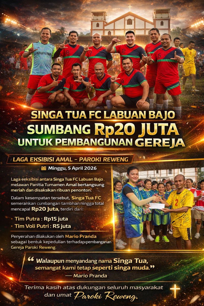 “Atas nama seluruh umat Paroki Reweng, kami mengucapkan terima kasih yang sebesar-besarnya serta penghargaan yang tulus kepada keluarga besar Singa Tua FC Labuan Bajo atas dukungan dan kepeduliannya dalam pembangunan gereja ini,” ungkapnya.